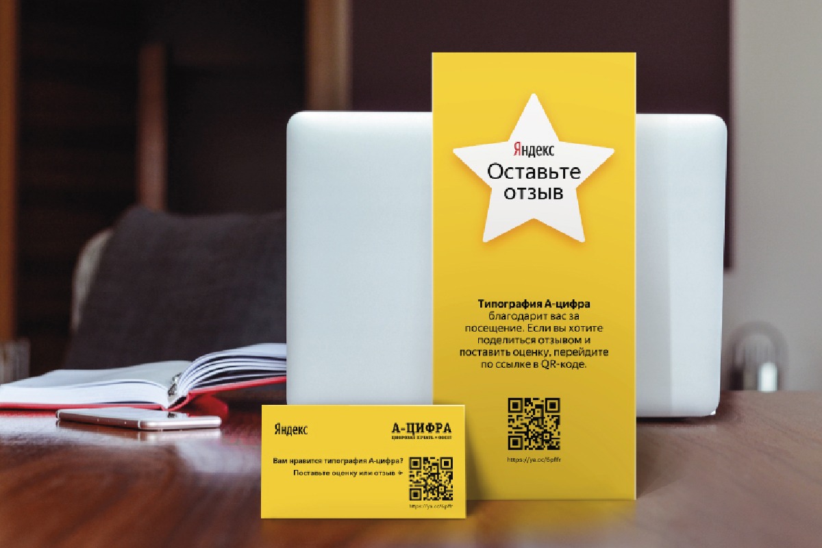 Яндекс пирамидка изготовлена для типографии, цель сбор отзывов от клиентов. Формат А4, бумага 300 гр, двухсторонний скотч, биговка, 44 шт